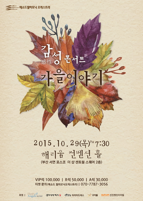 이전공연 공연일정 목록 본문 감성콘서트 가을이야기 공연일정 : 공연시간 : 공연장소 : 공연금액 : 공연주최 : 공연협찬 : 공연내용정보 감성콘서트 가을이야기 이전공연 공연일정 목록